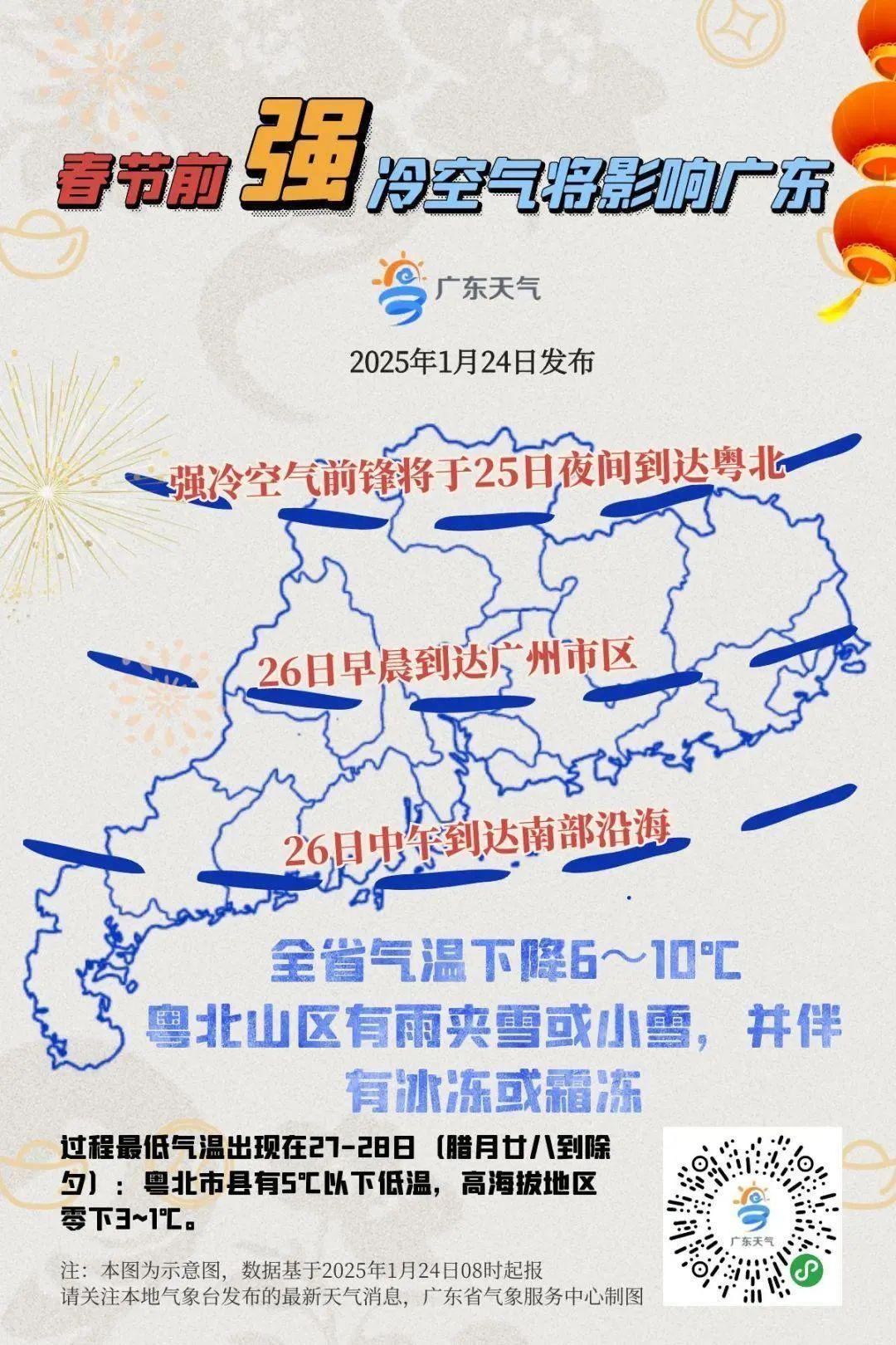 资料图 广东春节前天气: 24日-25日,我省西部市县有小雨,其余市县多云为主,大部分市县和我省中西部海面有(轻)雾。最低气温:粤北市县10℃-13℃,粤西、珠三角南部市县16℃-19℃,其余市县13℃-16℃。 26日,受强冷空气影响,气温将自北向南明显下降,我省中西部市县有小雨,粤北高海拔山区有雨夹雪或小雪。最低气温:粤北、珠三角北部市县4℃-7℃,高海拔山区0℃左右,局部有冰冻或霜冻,其余市县8℃-12℃。 27日-28日(除夕),我省大部分市县多云。最低气温:中北部市县2℃-5℃,高海拔山区零下3℃-1℃,有冰冻或霜冻,南部市县6℃-10℃。 广东春节期间天气: 初一到初二(1月29日-1月30日),大部分市县晴到多云。最低气温:中北部市县3℃-6℃,高海拔山区零下2℃-2℃,有冰冻或霜冻,南部市县7℃-12℃。 初三到初四(1月31日-2月1日),我省云量增多,有分散小雨,气温有所回升,早晚有轻雾。最低气温:北部市县8℃-10℃,中部市县10℃-13℃,南部市县14℃-16℃。 初五到初七(2月2日-2月4日),受新一股冷空气影响,全省大部分市县小雨转多云,气温小幅下降。 广州最低温预计到6℃: 25日,多云,早晚有轻雾,14℃-23℃; 26日,多云到阴天,有零星小雨,11℃-17℃; 27日,多云,8℃-14℃; 28日-29日,多云到晴,6℃-16℃; 30日,多云,9℃-17℃; 1月31日-2月2日,多云,间中有分散小雨,11℃-18℃; 2月3日-2月4日,多云到阴天,9℃-15℃。 琼州海峡多雾 1月25日-26日凌晨,有间歇性的大雾天气,能见度低于500米的时段将出现在25日早晨和26日的凌晨,单次持续时间约8小时,最低能见度100米左右,白天能见度将逐渐回升到1公里以上; 1月26日白天-1月30日白天,偏北风加大到6-7级、阵风8级,(轻)雾消散,能见度回升至10公里以上; 展望1月30日夜间-2月4日,有间歇性的轻雾或雾。 温馨提示 未来两天琼州海峡和华南沿海地区及海面的(轻)雾天气趋于明显,夜间到早晨时段能见度较低, 琼州海峡停航、低空航线停飞风险增加,建议提前做好出行安排。 广东及湖南、江西、广西等周边省份雨时道路湿滑,高海拔路段可能有结冰,交通拥堵或事故风险增大,需特别注意公路交通安全。 广东海陆风力明显增加股票配资网(晋),开阔水面及高架路桥需注意水陆安全,海上作业、滨海和海岛旅游注意防风避风,低空表演、庆祝活动关注大风影响。 |